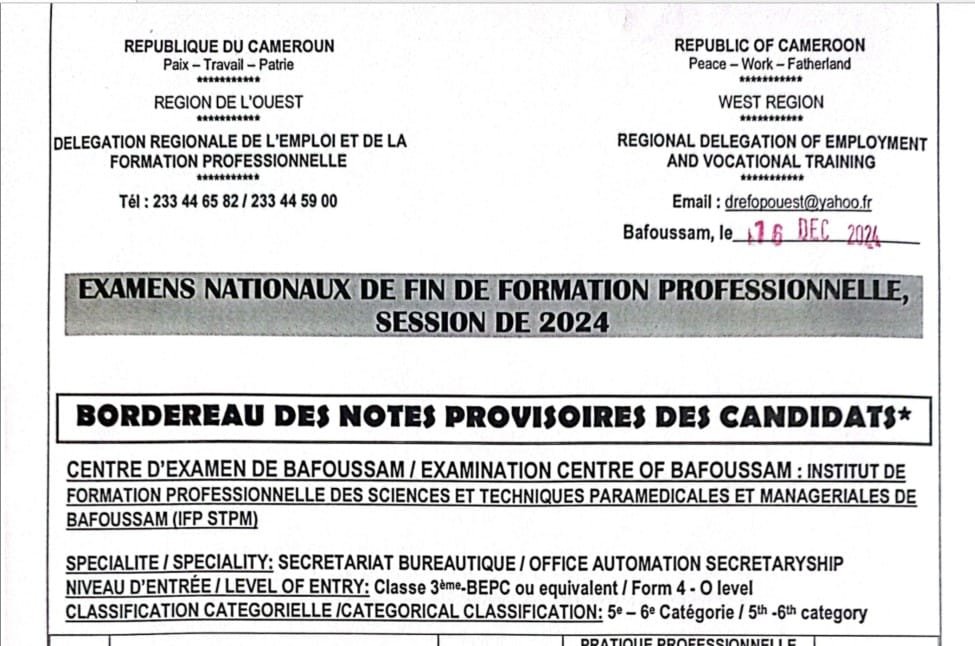 Bordereau des Notes Provisoires des Candidats DQP 2024